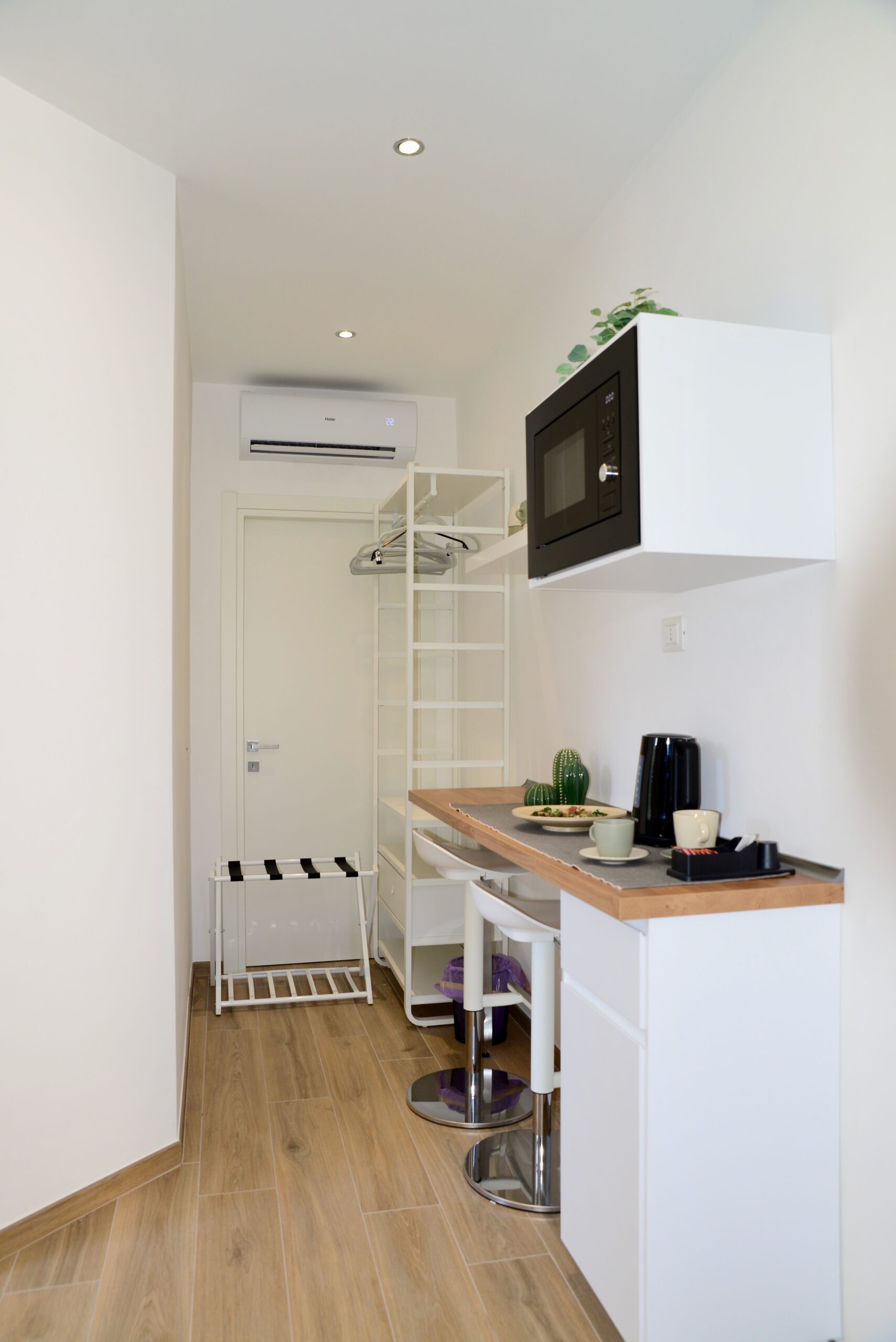 Si tratta di una camera da 18m² con bagno privato ed una cucina ad uso promiscuo appena fuori dalla porta. Tutte le camere sono belle ma -a nostro avviso- questa camera è la più piacevole da vivere